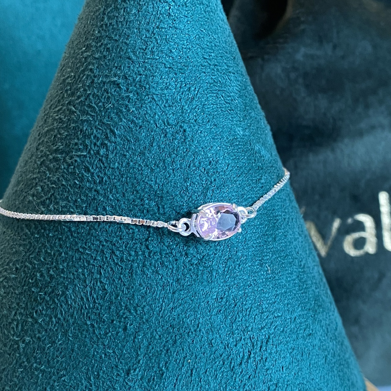 Joia em Prata 925 - Pulseira com zircônia oval rosa em prata 925